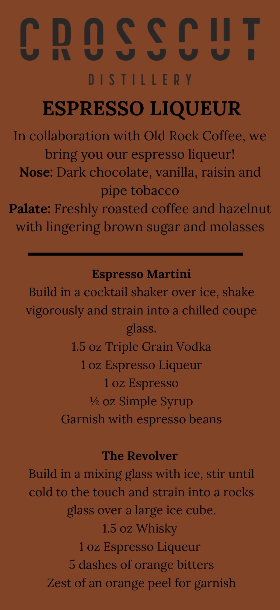 In collaboration with Old Rock Coffee, we bring you our espresso liqueur!